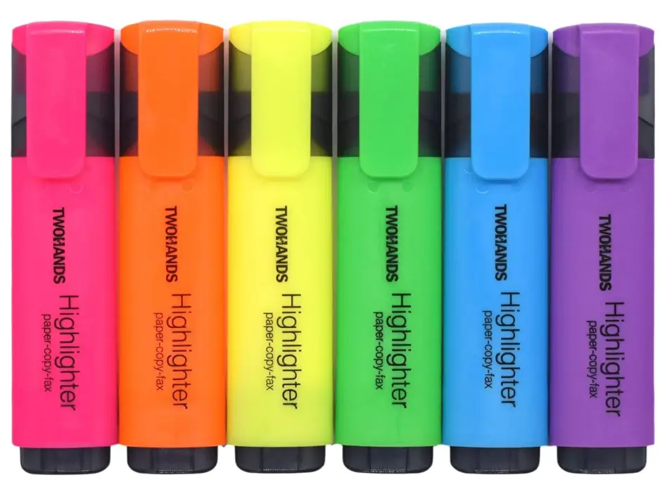 TWOHANDS Highlighters,Chisel Tip Marker Pens,6 Assorted Colors,with Large Ink Reservoir for Extra Long Marking 20062
